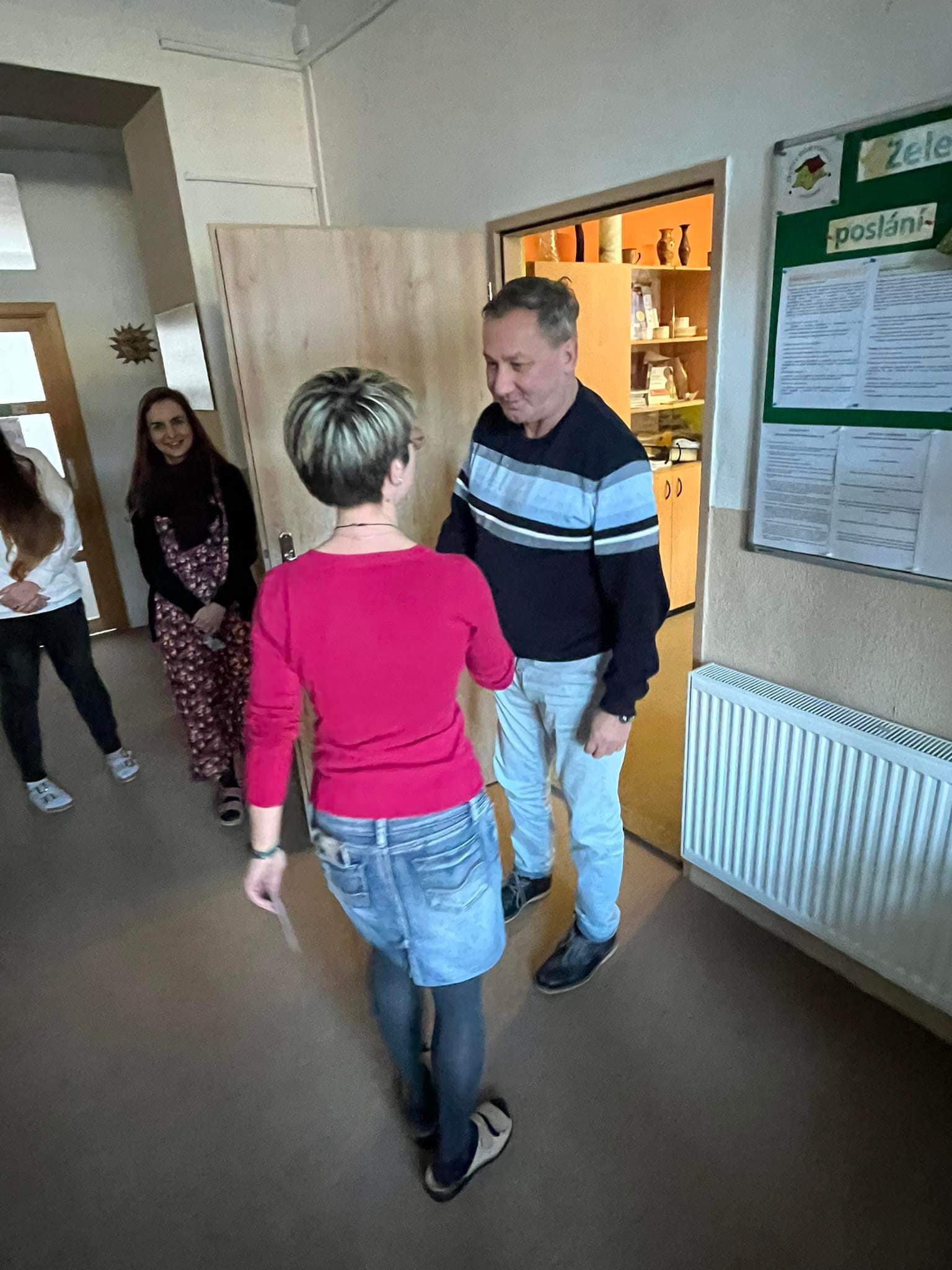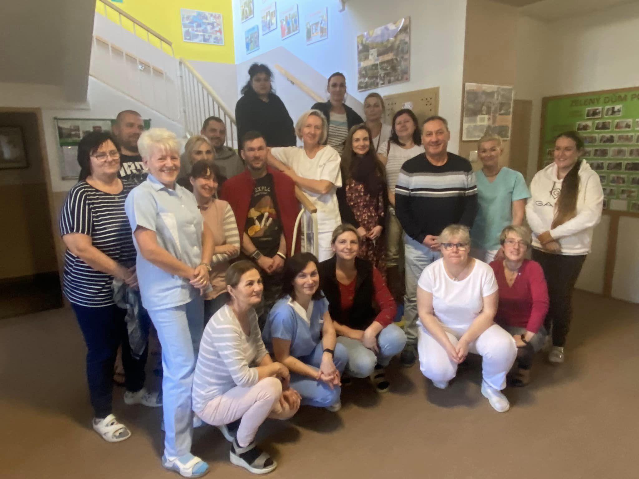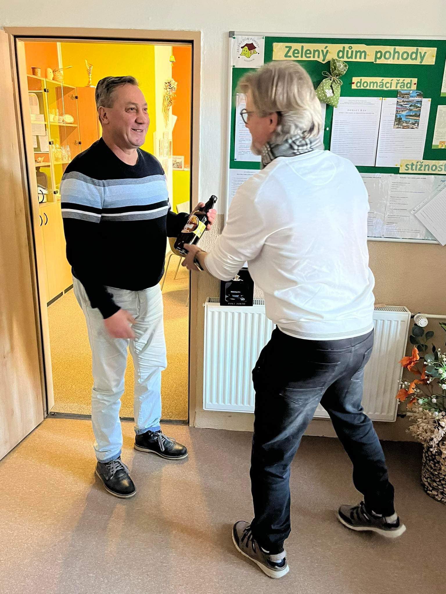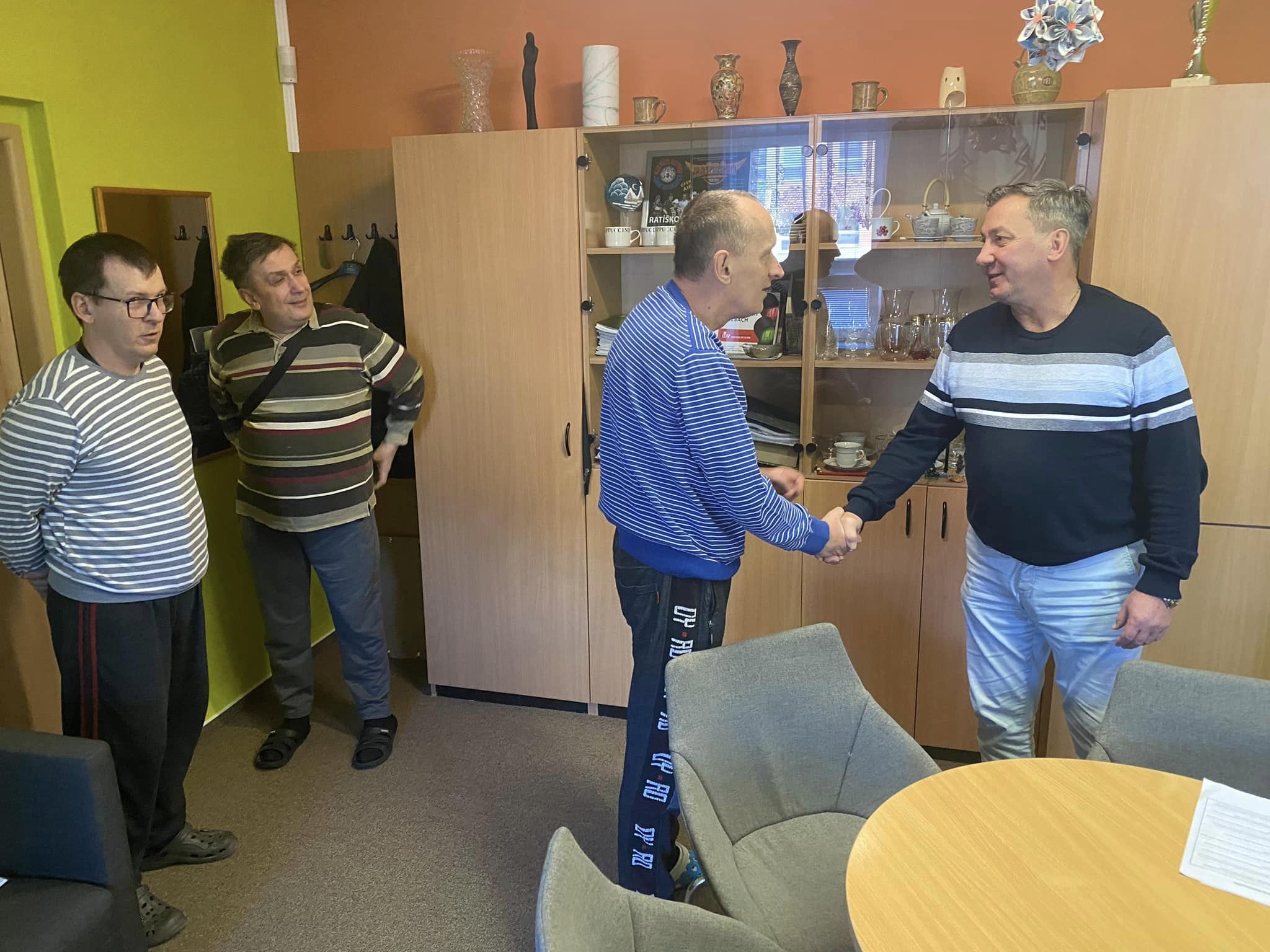 Dnes bylo na vyhlášeném koberečku před ředitelnou Zeleného domu pohody pořádně husto! Ale nemusíte se obávat - nikdo z uživatelů neutrpěl újmu a žádný z pracovníků nebyl povolán k vysvětlení situace. Ba naopak - doslova hrnoucí se davy, nejprve klientů bezprostředně po obědě, kde si vychutnali lahodný chlebíček se zákuskem, a posléze i pracovníků s hromadnou gratulací.
