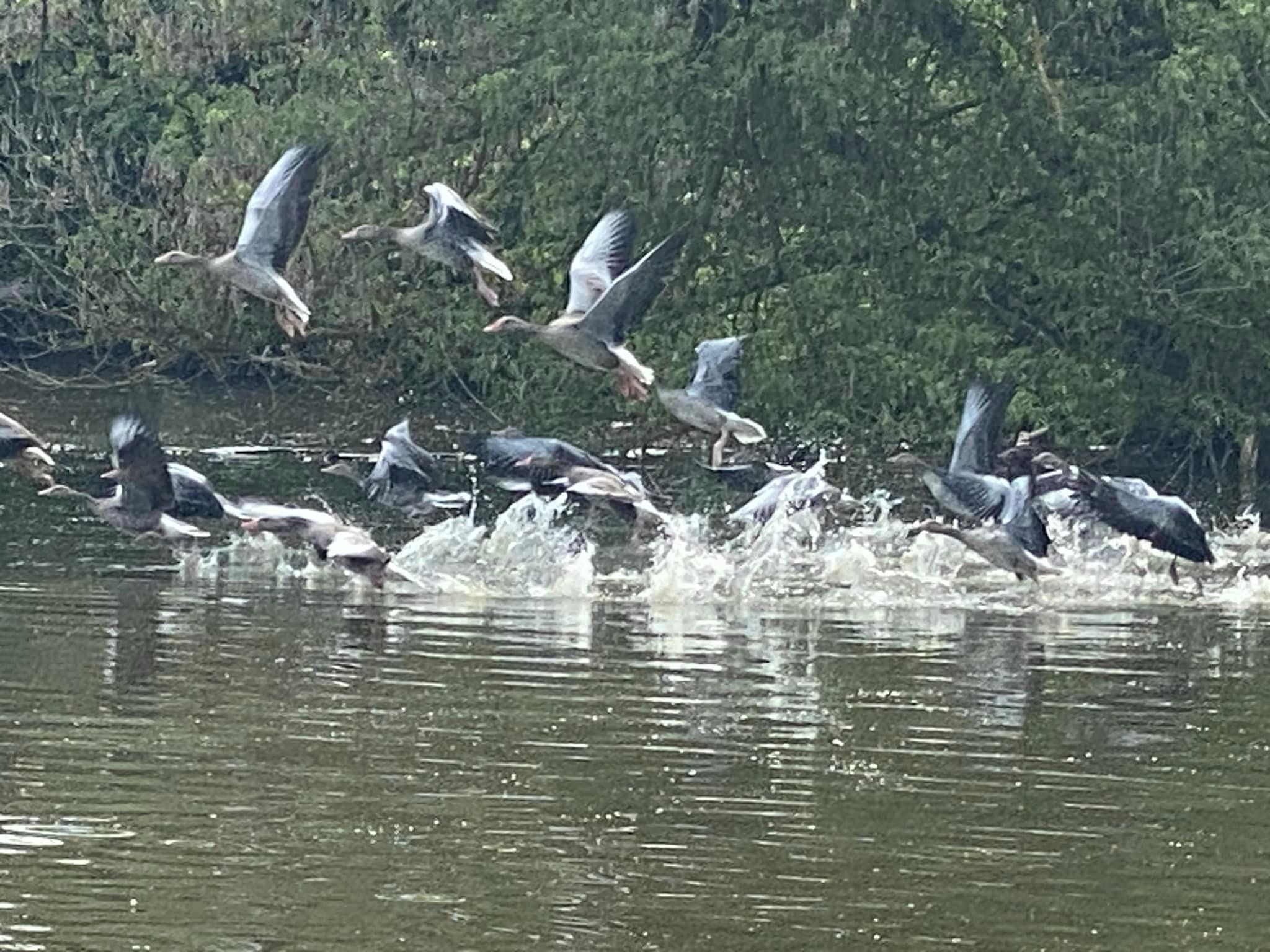 Dnešních příjemných letních teplot jsme využili k prozkoumávání okolí rozsáhlých písečných rybníků, zejména jejich fauny. K vidění toho bylo víc než dost – kačeny, labutě, volavky, kapři, koník a dokonce i jedna nutrie. Na jednom z rozcestí jsme narazili na instalované kvízové tabulky, a s chutí jsme tak vyzkoušeli svoje znalosti.